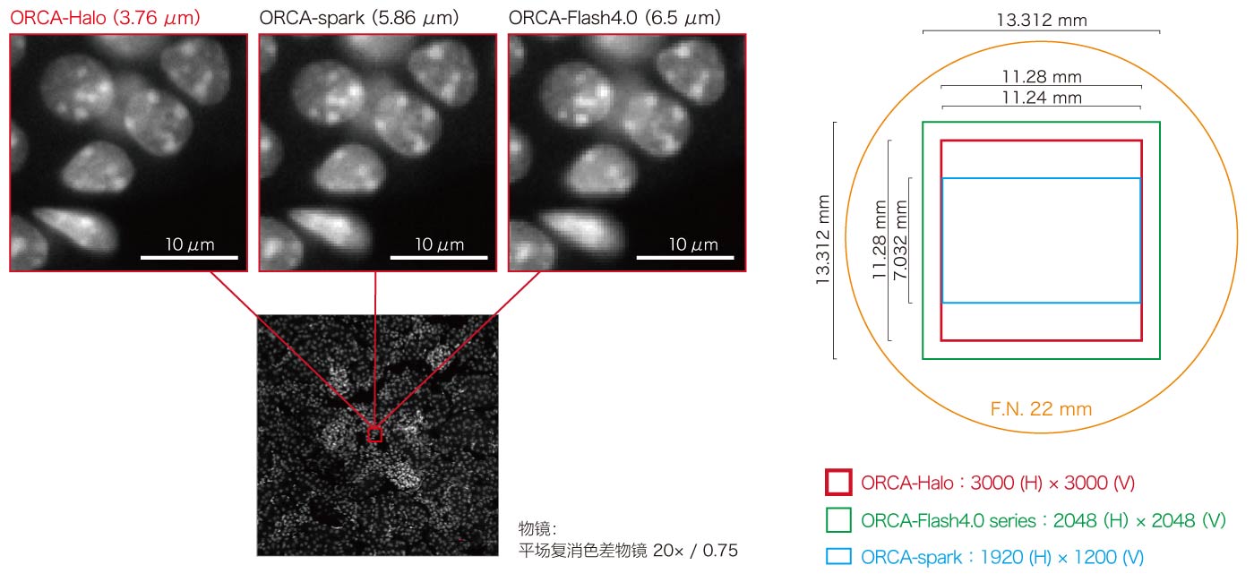 ORCA-Halo 的传感器像素尺寸为 3.76 μm,是我们在 sCMOS 相机中最小的像素尺寸之一。此外,它还具有 3000 像素 × 3000 像素的高分辨率,能够捕捉清晰细致的图像。